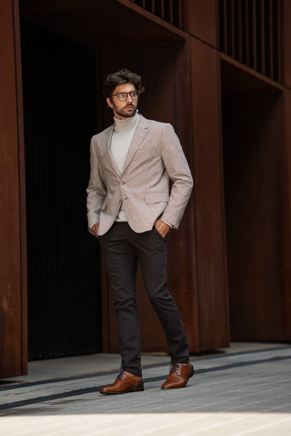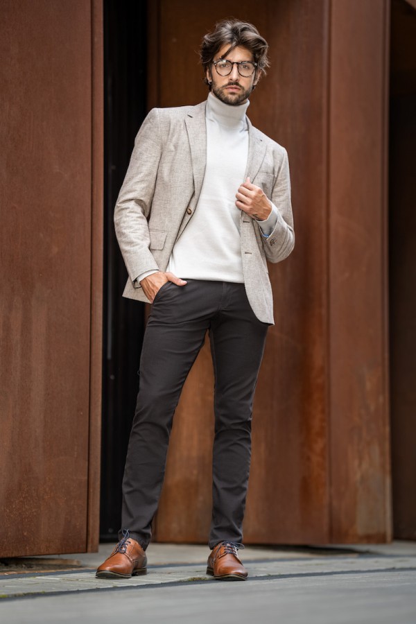 Te spodnie zapewnią każdemu panu modny i stylowy wygląd. To model typu Slim spodni wizytowych ze średnim stanem o delikatnie zwężanej nogawce, nadają sylwetce odpowiednie proporcje a dzięki dodatkowi elastanu są wygodne w noszeniu. Pasują do wielu marynarek i koszul zarówno gładkich jak i wzorzystych. Spodnie o ciekawej fakturze tkaniny.