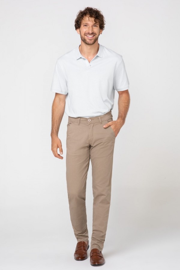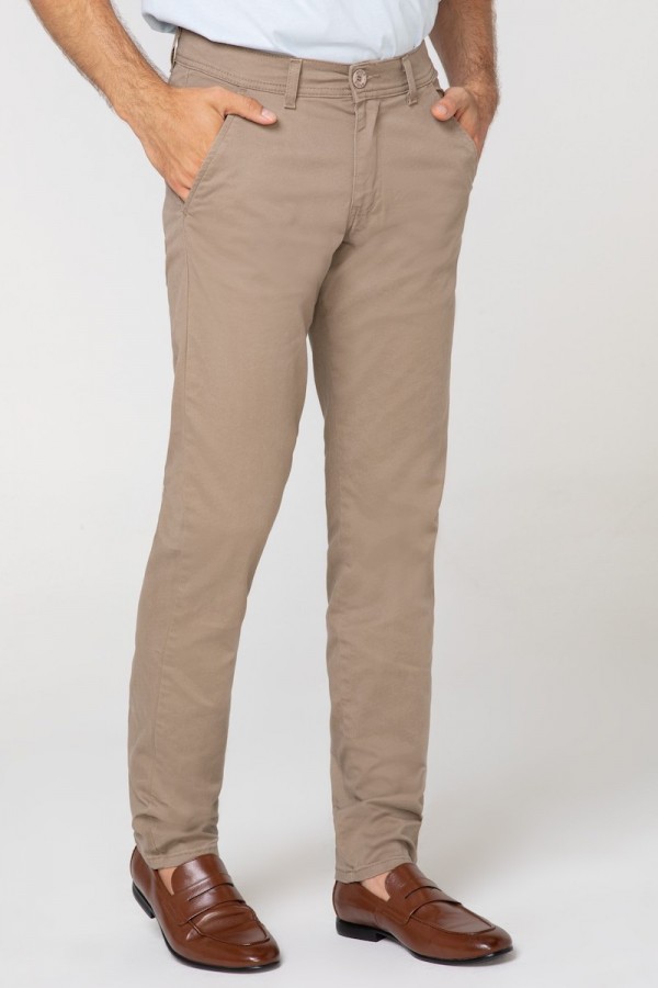 SPODNIE BAWEŁNIANE POINT BEŻ 211 COMFORT SLIM