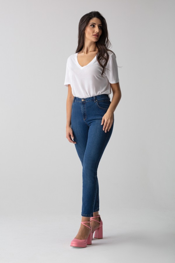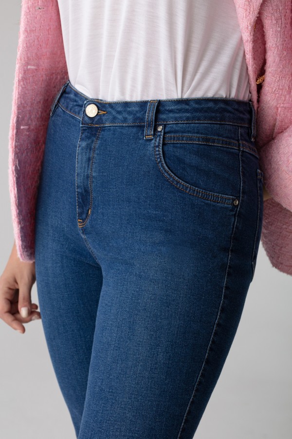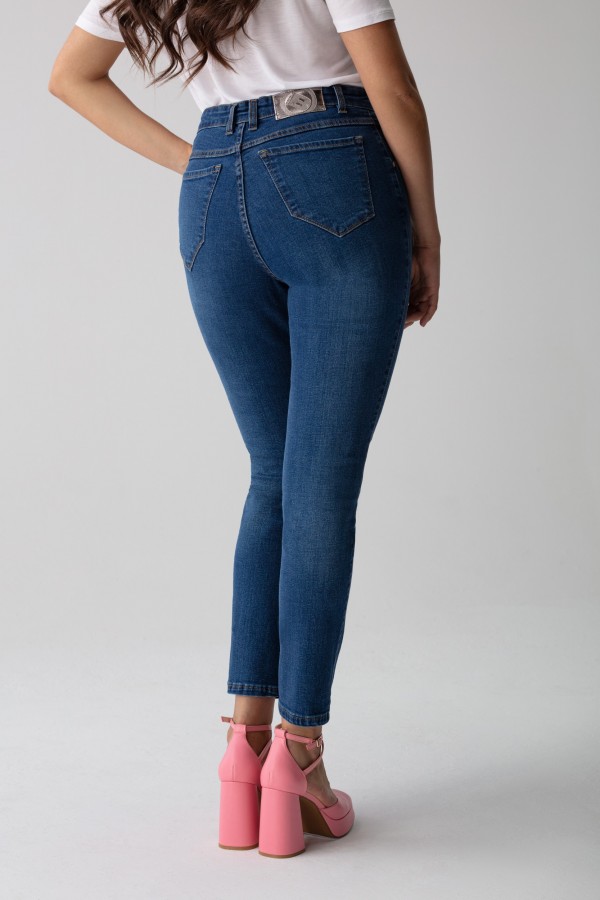 Spodnie PAMELA to damskie jeansy w wersji COMFORT SLIM - są stylowe i wygodne. Nogawka delikatnie zwęża się ku dołowi, ale nie opina nogi dając uczucie komfortu, jednocześnie nie tracąc kształtu sylwetki. Są szyte z najlepszej jakości materiału, a domieszka elastanu zapewnia pełną swobodę ruchu.