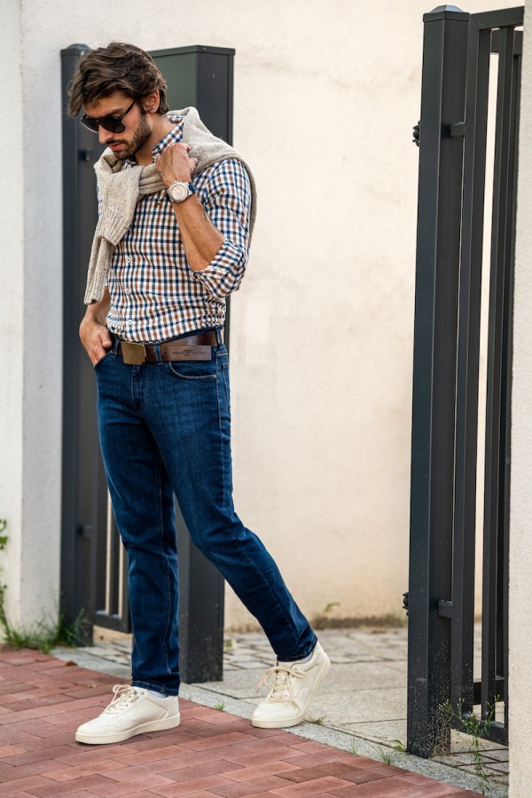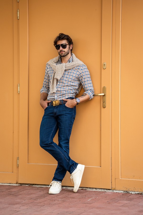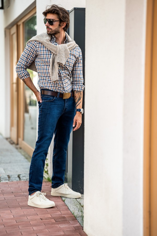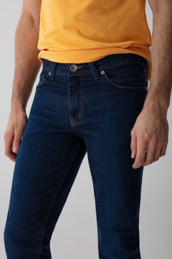 Jeansy męskie typu Comfort Slim o wygodnym kroju i lekko zwężanej (komfortowej) nogawce. Spodnie jeansowe z dodatkiem elastanu dzięki czemu dobrze dopasowują się do sylwetki. Dają uczucie swobody. Jeansy o klasycznym kolorze, posiadają modne przetarcia. Stan średni, poszerzane udo, dół nogawki lekko zwężany.